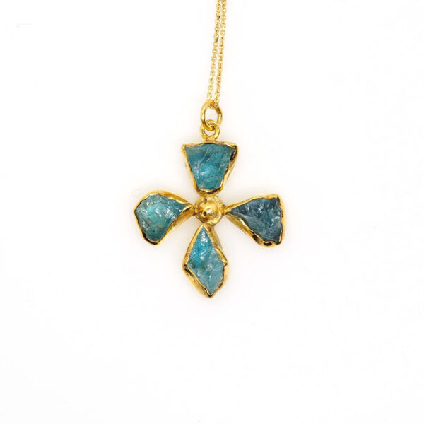 Χειροποίητος Aqua marine Σταυρός σε Χρυσό 18Κ
